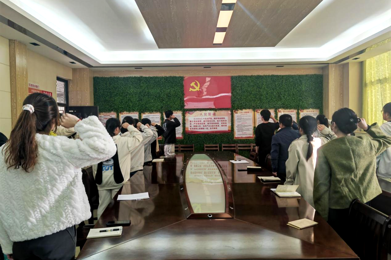 全体人员先参观了校史馆,深入了解学校的发展历程和辉煌成就,随后在7A429会议室进行了入党宣誓仪式。入党宣誓仪式在《国际歌》庄严地奏唱中拉开了帷幕。李贤阳、钟振乾为全体新发展党员赠送《中国共产党章程》一书,学生第一党支部党员李海登带领全体党员庄严宣誓,全体党员面向鲜红的党旗,紧握右拳,庄严宣誓。通过宣誓仪式,新党员将更加深刻地认识自身肩负的责任与使命,坚定为共产主义事业奋斗的信念,牢记党的宗旨和目标,为实现共产主义事业而努力奋斗。