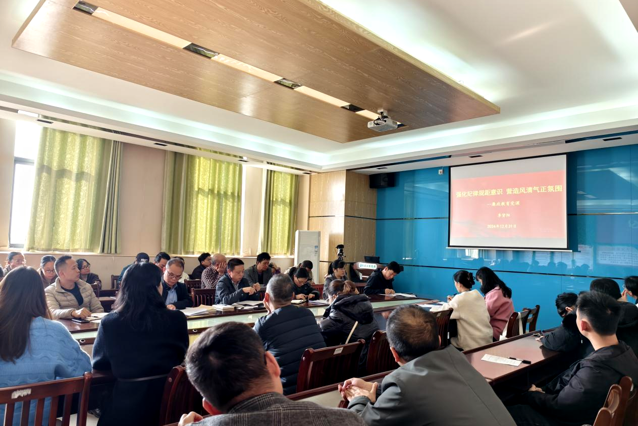 为深入推进党风廉政建设,筑牢师生廉洁思想防线,12月31日,食品工程学院在7A-429开展了主题为 “强化纪律规矩意识,营造风清气正氛围”的廉政教育党课。本次党课由学院党委书记李贤阳主讲,学院全体教职工参加。