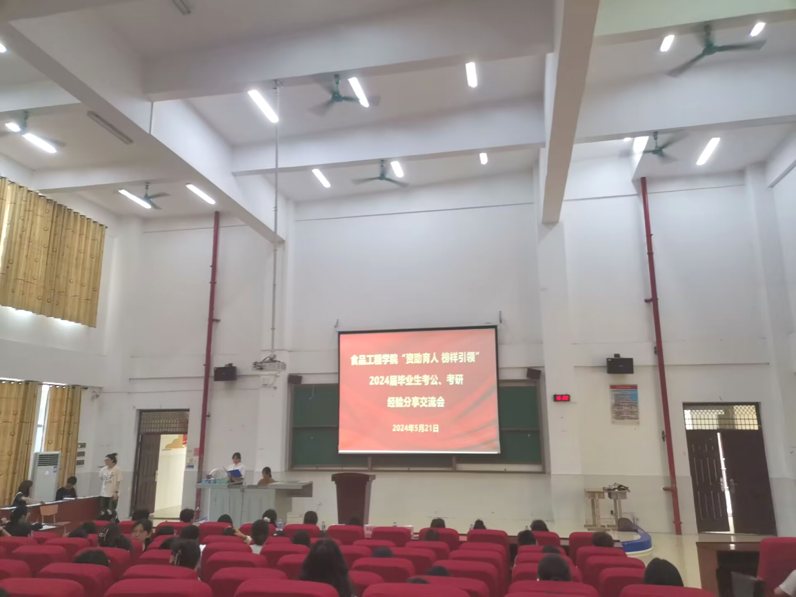 为了帮助同学们了解考研、考公相关的政策和备考技巧,坚定考公、考研的决心,提高学习备考效率,营造良好的学习氛围。2024年5月21日下午,食品工程学院在12号教学楼213举办了“资助育人 榜样引领”2024届毕业生考研、考公经验分享交流会。本次活动由“春育”辅导员工作室及学院各学生支部联合承办,低年级学生党支部食安本221班李若彤主持分享会,学院大一至大三学生积极参加此次分享会。