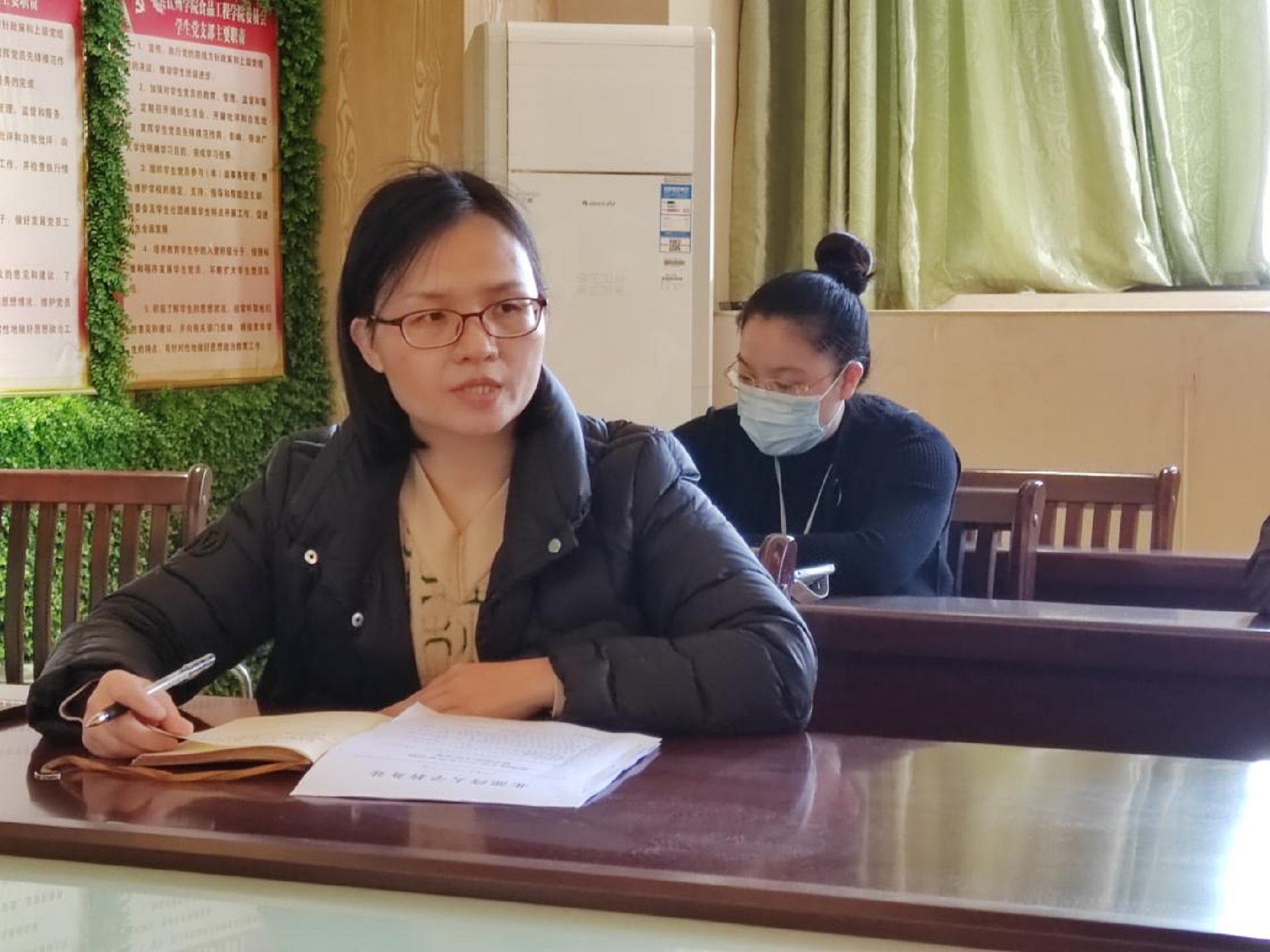院长张晨晓发言,她勉励全体教职工利用专业优势,积极指导学生参加今年在我校举行的区级“互联网+”大赛,鼓励教师积极参加科研竞赛以及科研项目申报,加大对科研的投入,提升科研成果的转化能力;同时要指导好学生的毕业论文,勉励所有老师齐心协力、不怕困难,一起携手做好学院的教学和科研工作。最后,张院长还强调,要求各位教师要坚守立德树人初心,慎言慎行,加强师德师风修养。