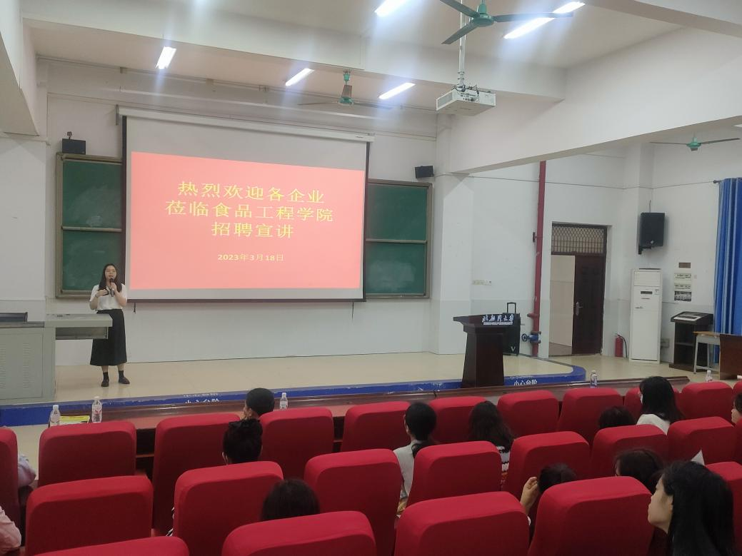 为进一步扩大学院毕业生就业渠道,提升毕业生就业质量,2023年3月18日上午11:00,我院在12号教学楼104企业招聘专场宣讲会。学院院长张晨晓、副书记钟振乾、副院长蔡秋杏、合浦工业园管委会办公室主任曹泽胜出席宣讲会。辅导员老师杨国玲、就业指导老师游刚老师、陈美花老师参加本次宣讲会。参加本次宣讲会的企业有广东正大生态农业有限公司、广西双胞胎饲料有限公司、广东厨邦食品有限公司、阳江喜之郎果冻制造有限公司、南宁力源粮油食品有限责任公司以及合浦工业园4家食品相关企业等共9家企业。学院组织有企业求职意向的百余名2023届毕业生参加了此次专场招聘宣讲会。宣讲会由学院党委副书记钟振乾主持。