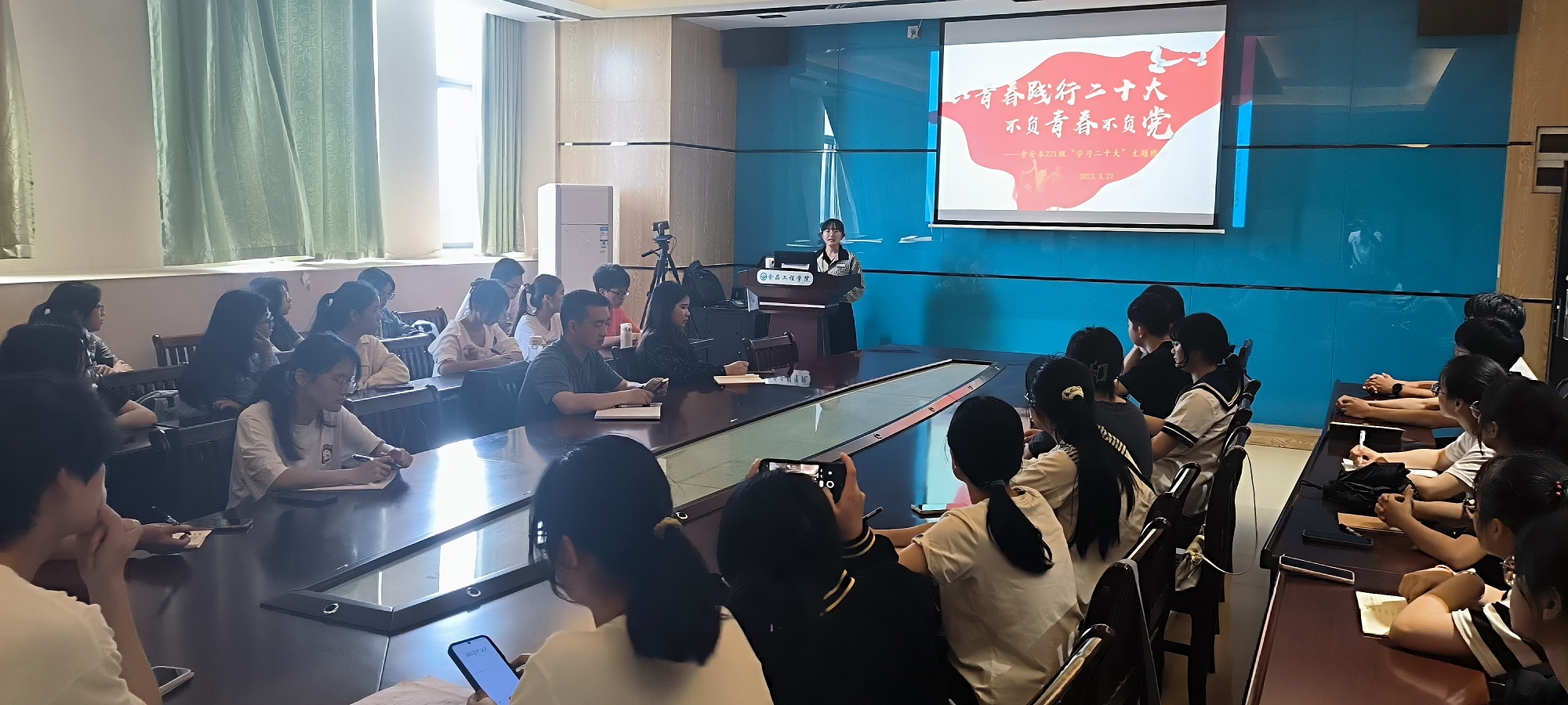 主题班会围绕着“党的二十大”、“青春”等几个关键词展开。各班分别以“故事分享”、“二十大我来讲”等形式进行,同学们分享人生理想,结合自身成长经历、专业特点,谈如何践行党的二十大精神、立志成长为新时代好青年的思考和实践。最后,学院领导班子成员进行点评,学习贯穿党的二十大精神是当前和今后一段时间最重要的政治任务,各班要组织学习好,并学深悟透,做到学以致用。党的二十大对未来五年乃至更长时期党和国家事业发展的目标任务和大政方针进行科学谋划,提出了新时代新征程中国共产党的使命任务和行动纲领,发出了为全面建设社会主义现代化国家、全面推进中华民族伟大复兴而团结奋斗的动员令。作为大学生要坚定理想信念,自觉将个人理想融入党和国家事业当中,珍惜在校学习生活,努力奋斗,增强为人民服务的本领和才干。学院领导分享了个人的成长经历和故事,讲述了学习党的二十大的学习感悟,认为学习党的二十大,必须结合专业、实际来学,才能学深弄懂做实。