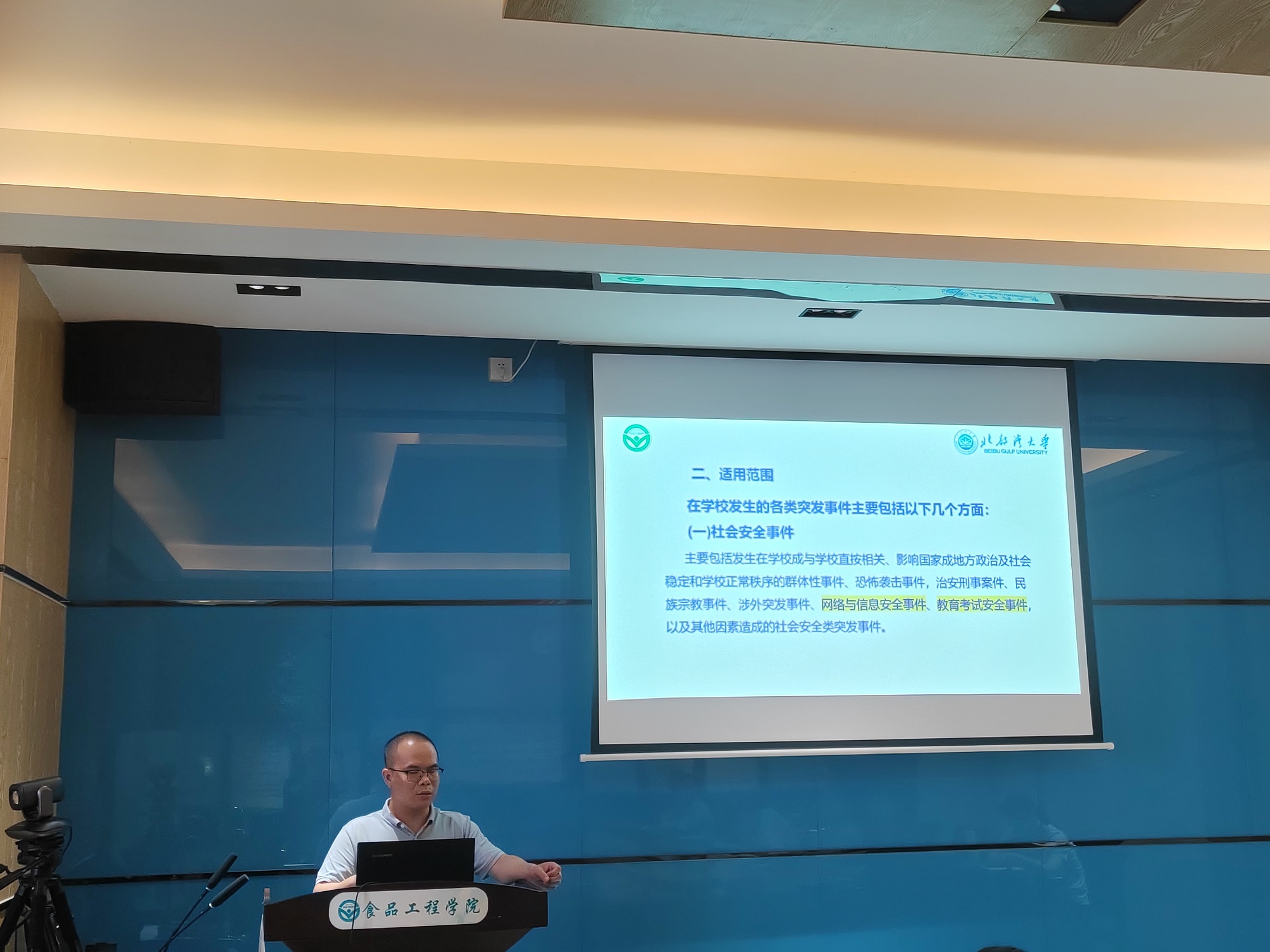 会上,学院党委副书记钟振乾组织全体学工人员一起学习了《突发事件应急处置预案》。钟副书记从文件制定的目的、突发事件的分类、相关人员工作职责、工作原则、突发事件的预防与预警等方面进行解读和学习,并通过相关案例进行分析,重点学习了事件的处理流程和技巧。钟副书记认为要处理好突发事件,要做好从以下几个方面工作。一是完善突发事件的应急处理机制;二是加强班级和干部队伍安全教育,提高处理突发事件能力的提升;三是强化安全防范教育和保险体系;四是建立与相关部门安全联动机制。