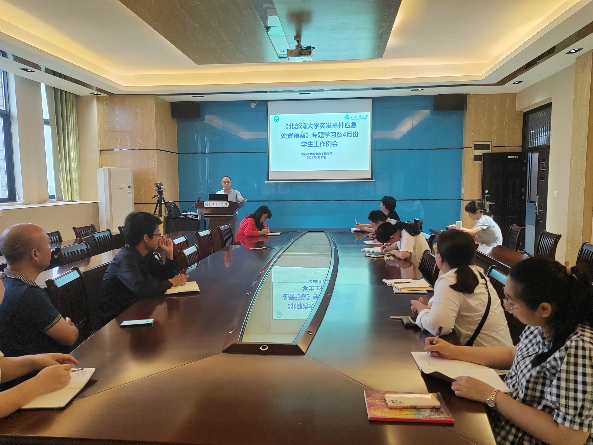 为加强学工人队伍对学校相关文件的学习,提高他们的工作能力,4月17日下午,学院在7号教学楼7A429会议室召开《北部湾大学突发事件应急处置预案》专题学习暨4月份学生工作例会。全体班主任、辅导员参加会议,会议由学院党委副书记钟振乾主持。