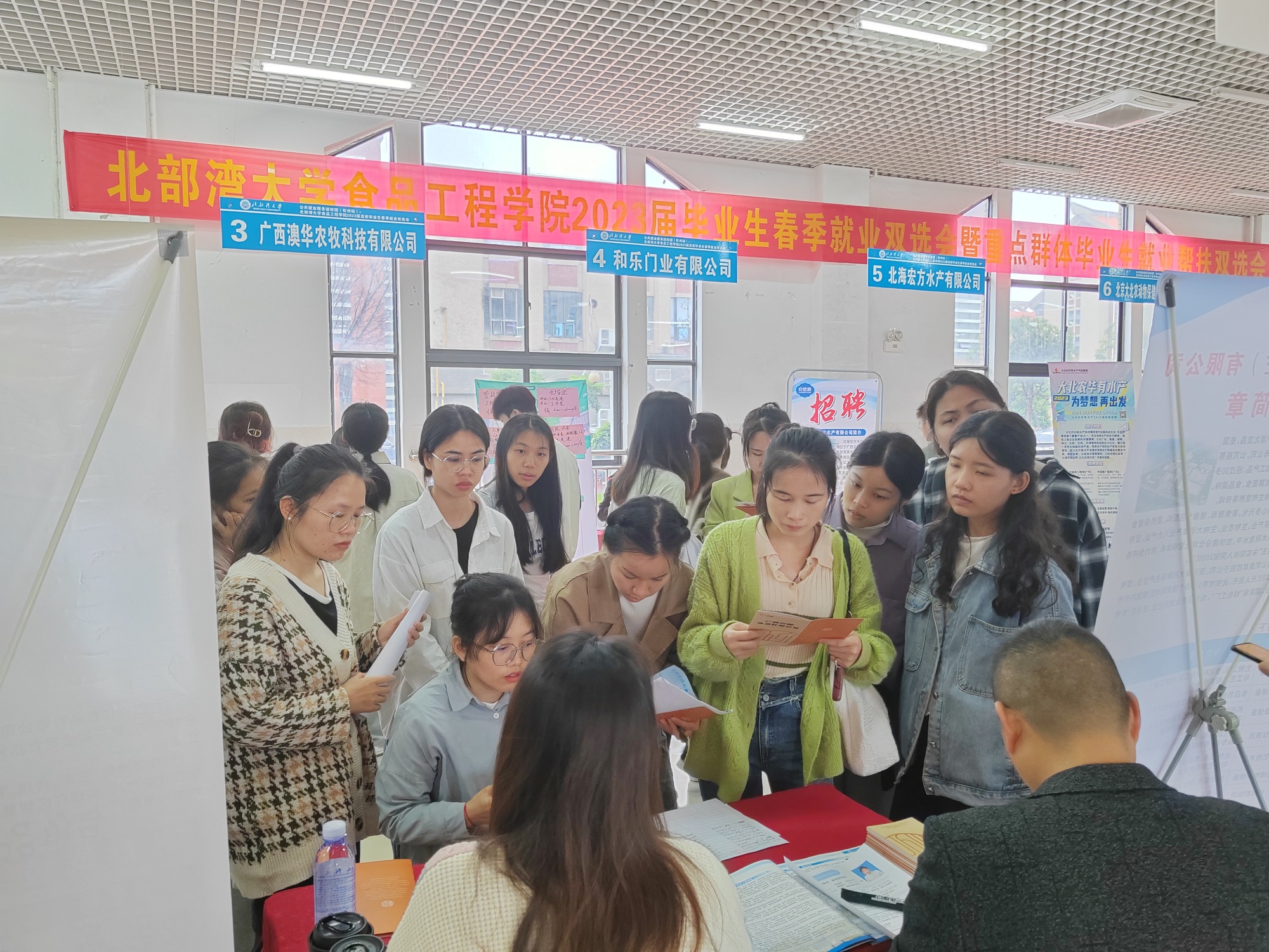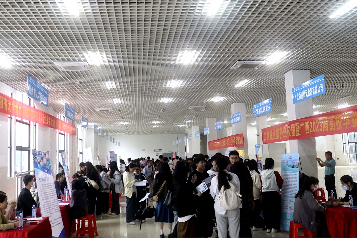 抢抓春招黄金期,千方百计促就业。为了做好我院2023届毕业生就业工作尤其是重点群体毕业生就业帮扶工作,全力促进毕业生高质量充分就业,5月12日我院在学校大学创园一楼举办“公共就业服务进校园(钦州站)”北部湾大学食品工程学院2023届毕业生春季就业双选会暨重点群体毕业生就业帮扶双选会。本次双选会由我校和钦州市人力资源和社会保障局主办,我院和钦州市人才承办的大型招聘会共同举办,吸引了21家区内外用人单位。