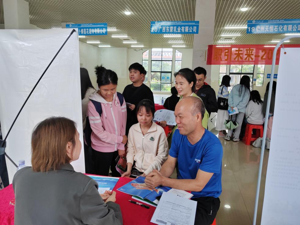 本次双选会共邀请南宁、桂林、钦州、防城港等地20多家企业,涵盖品控、质检、化验、生产管理管培生等多岗位。此次招聘会提供近80个工作岗位,招聘人数约500人。双选会现场,气氛热烈、秩序井然。各企业展位前,站满了前来咨询的毕业生。毕业生手持简历与用人单位面对面交流咨询,用人单位耐心介绍岗位需求、技能要求及薪酬待遇等情况。部分非毕业班的同学也积极参与、关注与了解就业形势和需求,为自身职业提前做好规划。