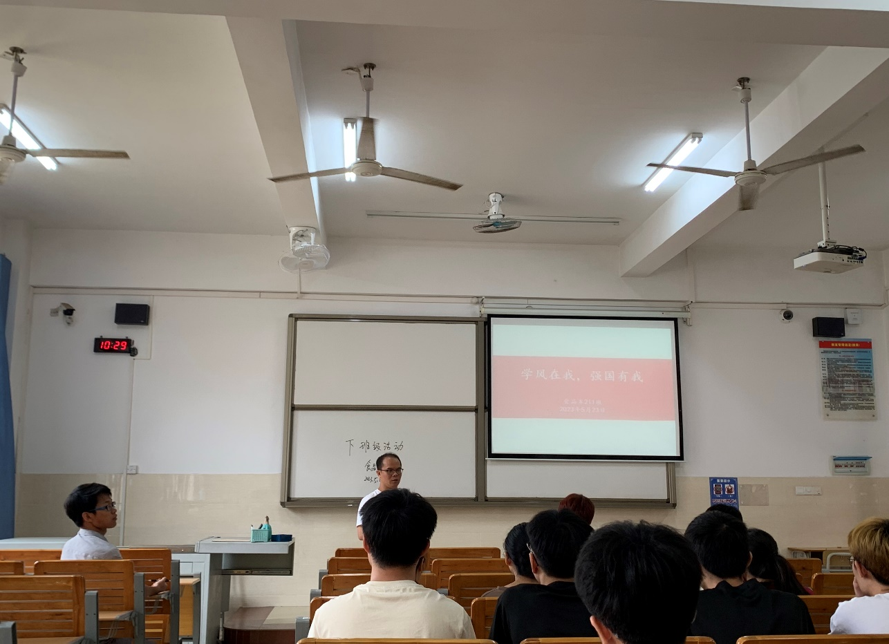 为了解和掌握学生学风情况,听取学生对学风的意见和建议,2023年5月23日上午,学院党委副书记钟振乾深入食品本211班开展了“学风在我,强国有我”班会主题调研活动。食品本211班班主任蒋红明和全体同学参加活动。