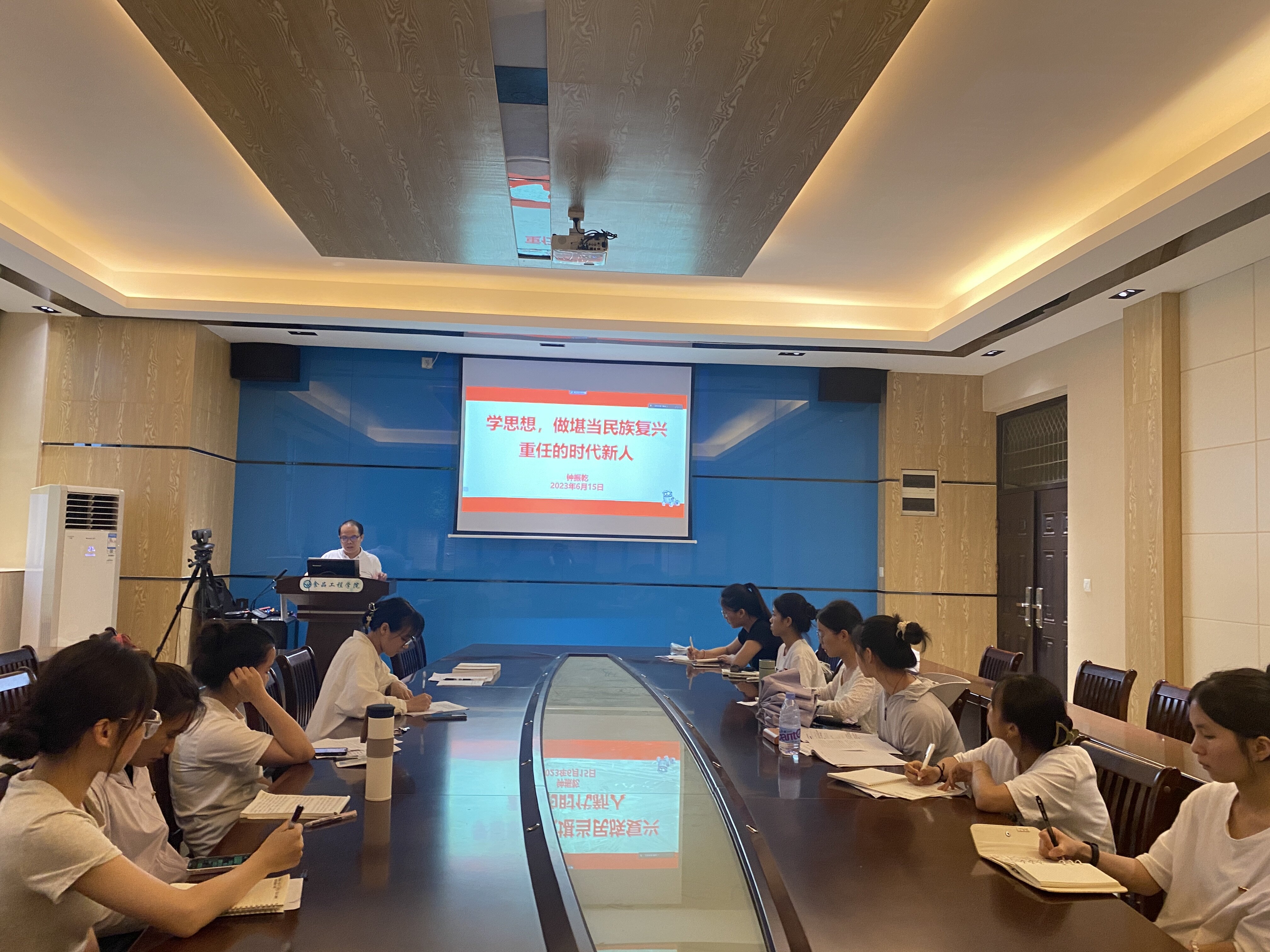 为增强学生党员对于习近平新时代中国特色社会主义思想的理解,更好地成长为能够担当伟大复兴使命的时代新人,2023年6月15日下午,食品工程学院党委副书记、学生第二党支部书记钟振乾在7号教学楼7A429会议室为学生第二支部全体党员讲授“学思想,做堪当民族复兴重任的时代新人”专题党课。
