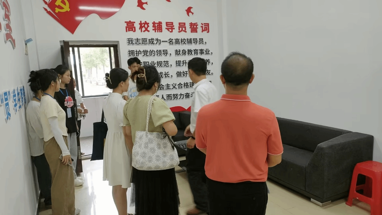 在西区学生公寓3栋、10栋宿舍楼下,领导老师们认真查看了辅导员(学业规划)工作室、和学院党建服务中心,了解工作室、服务中心环境及各项材料。陈书记指出,辅导员、班主任要充分利用好工作室、服务中心,与学生建立密切联系,积极深入学生当中,开展好学生思想政治教育工作。