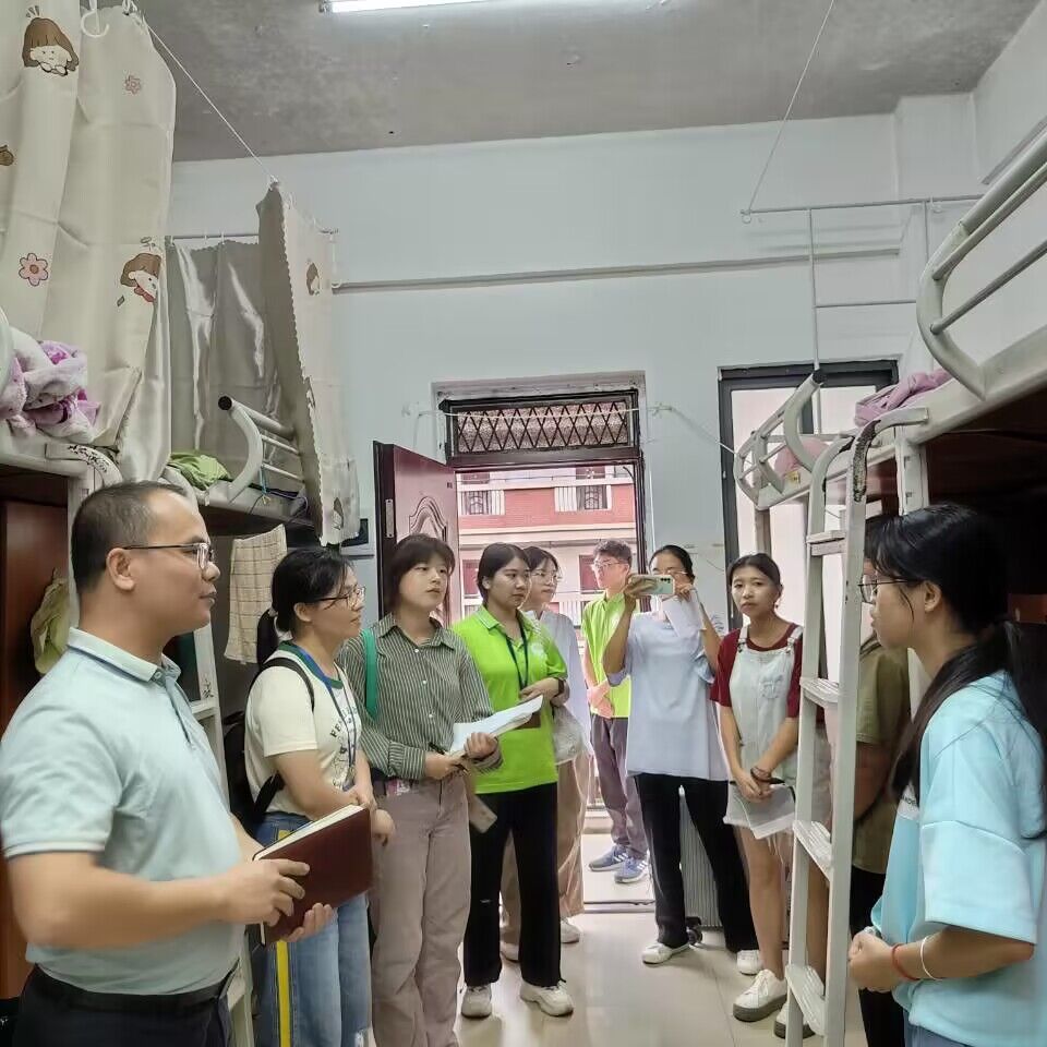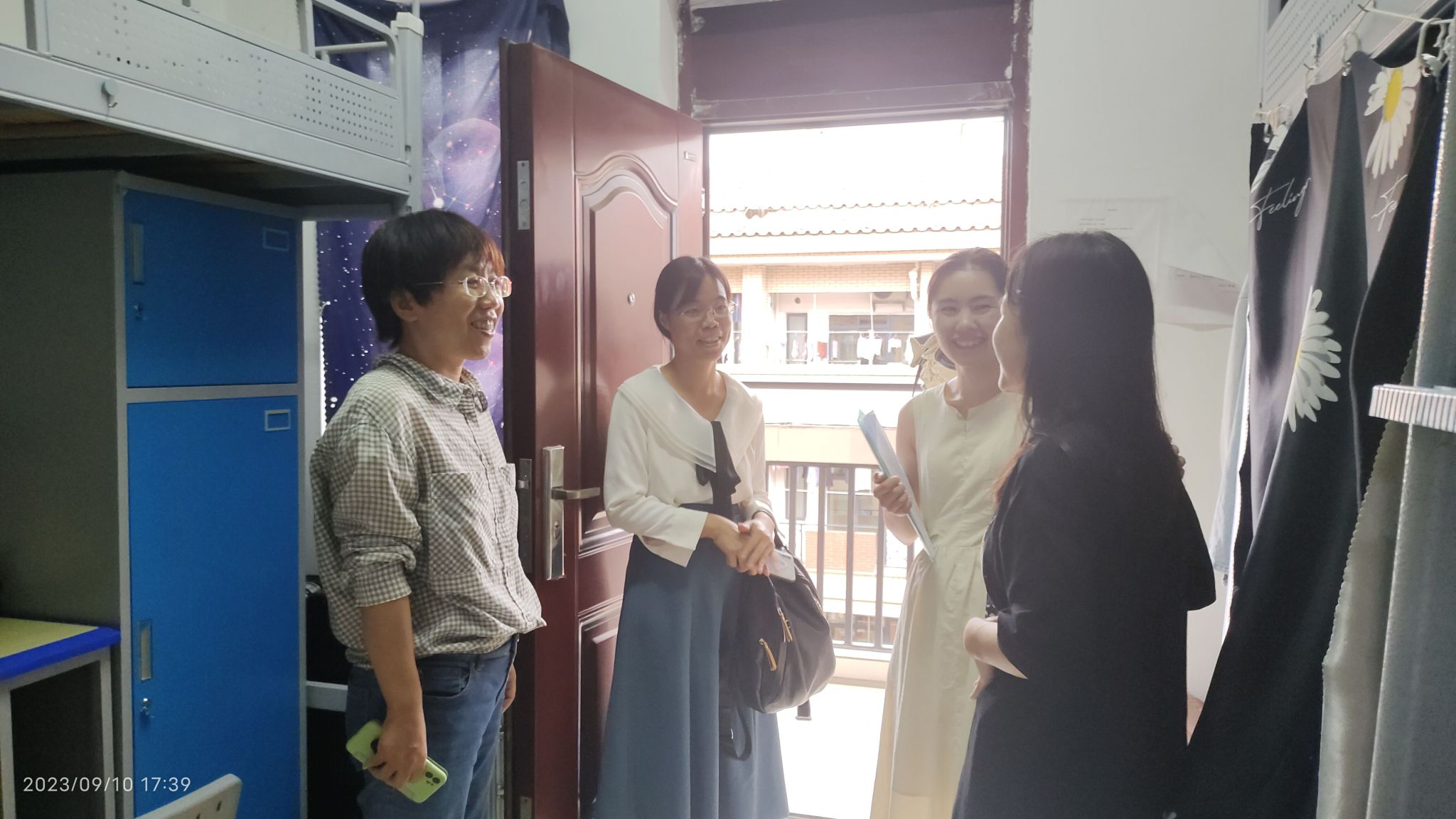 云天收夏色,木叶动秋声。为深入了解2023级新生住宿和生活情况,帮助新生更快适应新环境,做好新生入学教育工作。9月10日下午,院党委书记陈东升、院长张晨晓、院党委副书记钟振乾老师、院团委书记陈倩倩老师带领辅导员、新生班主任及学生干部逐一走访慰问新生。