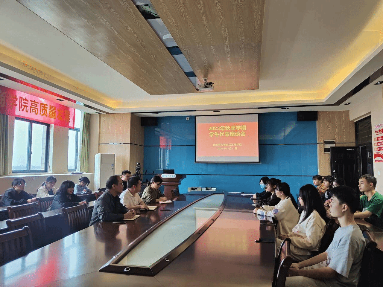为贯彻落实资助育人理念,深入了解学生家庭经济情况和学习情况,切实提升资助育人工作实效,12月11日12:00,食品工程学院在7A429会议室召开了2023年秋季学期学生代表座谈会。食品工程学院党委书记李贤阳、院长戴梓茹出席座谈会,辅导员代表杨国玲、程莹,班主任代表时萍、刘远森,各班学生代表参加会议,会议由学院党委副书记钟振乾老师主持。