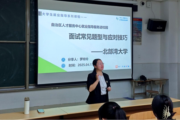 4月17日,食品工程学院联合自治区人才服务中心在北部湾大学教学楼12-404教室,开展大学生就业指导系列课程之“面试常见题型与应对技巧”专题讲座。本次课程邀请到自治区人才服务中心罗铃铃老师主讲,旨在帮助毕业生、在校生提升面试能力和技巧,在激烈的就业竞争中脱颖而出。