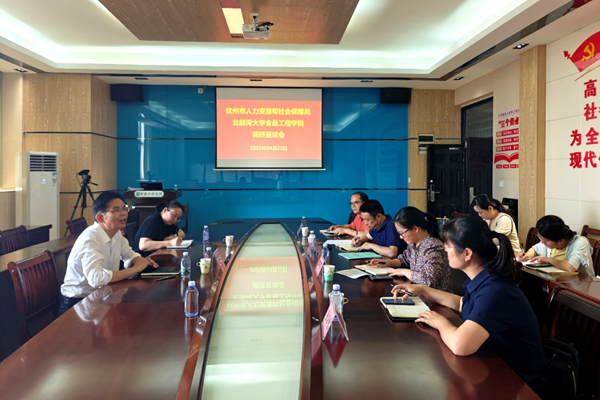 为落实高校毕业生就业创业政策,积极推动大学毕业生高质量就业,4月22日,钦州市人力资源和社会保障局局长黄宗旺和人才服务中心主任周丹一同前往食品工程学院,就大学毕业生就业政策问题及就业去向等展开调研。食品工程学院领导班子和部分教师代表参与了调研座谈会。