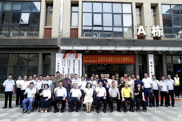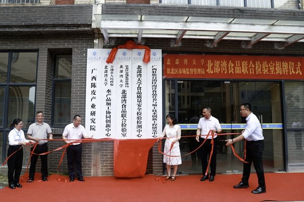 钦北区市场监管局局长周万凤、钦州市农业农村局四级调研员劳式义、钦州市检验检测中心主任何秋云、钦北区食品协会会长邝善广、钦州市融媒体中心记者周顺彬、北部湾大学职能部门领导以及北部湾食品联合检验室全体工作人员参加揭牌仪式。