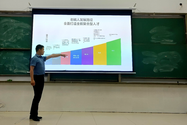 宣讲会上,廖经理详细介绍了企业的品牌发展历程、企业文化及未来战略规划,并重点解读了储备店长岗位的职责、晋升路径及薪资福利体系。他鼓励同学们积极挑战自我,在实践中提升管理能力,与企业共同成长。