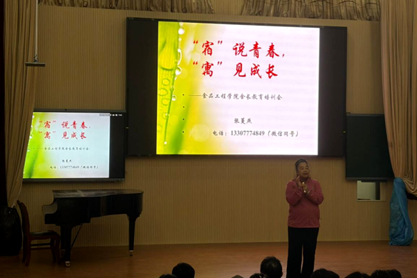 为加强宿舍文化建设,营养良好宿舍氛围,提高舍长的综合能力,2025年11月18日晚上,食品工程学院在1号教学楼1B115报告厅开展“‘宿’说青春,‘寓’见成长”舍长教育培训会。本次教育培训会邀请到了学校银龄宣讲团资深成员张蔓燕老师主讲。辅导员李浩然出席培训会,百余名宿舍长踊跃参与,现场座无虚席。