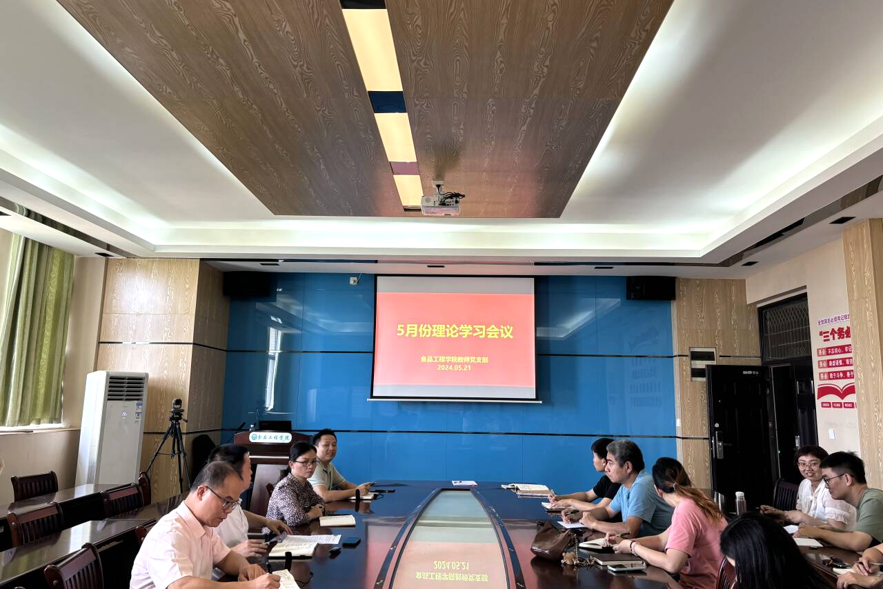 5月21日下午,食品工程学院教师党支部在7A-429会议室进行集中理论学习,会议由支部书记游刚主持,支部全体党员参加会议。