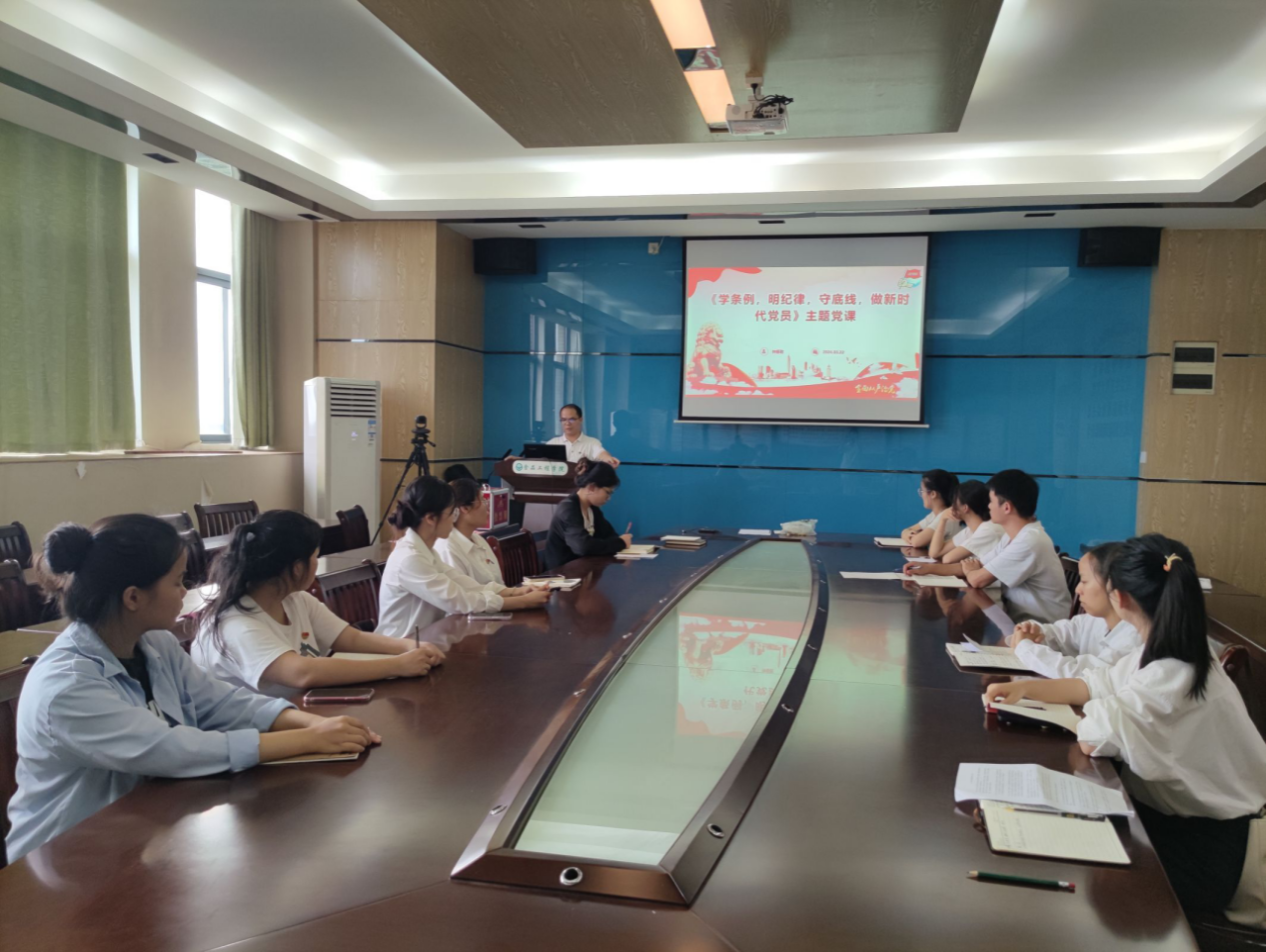 为深入学习贯彻习近平总书记关于党纪学习教育的重要讲话和重要指示精神,引导学生党员学纪、知纪、明纪、守纪,2024年6月11日下午,学院党委副书记、学生第二党支部书记钟振乾在7A-429会议室给支部全体党员上《学条例,明纪律,守底线,做新时代党员》主题党课。